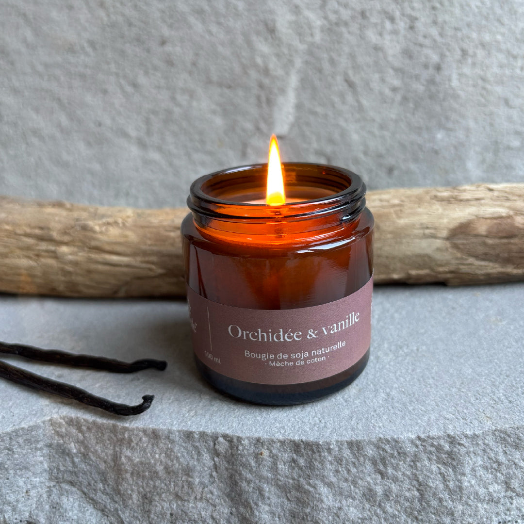 La gousse de vanille étant le fruit d'une variété d'orchidée (Vanilla Planifolia), ce lien nous a inspiré cette fragrance qui invite à la détente et au bien-être. Douce, florale, avec des notes de bois d'Agar, de fève de tonka et un soupçon vanillé. Notre bougie Orchidée & vanille est parfaite pour retomber en mode cocooning.