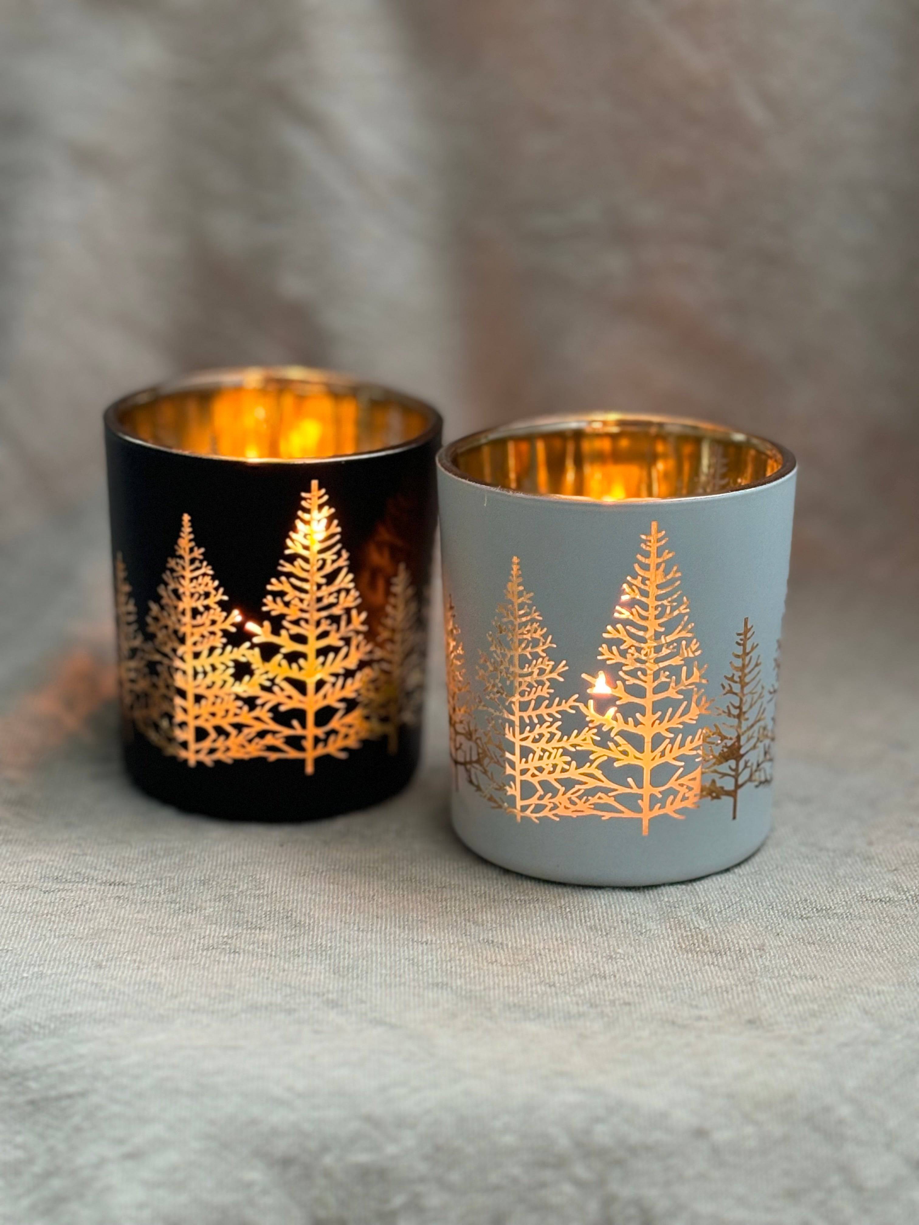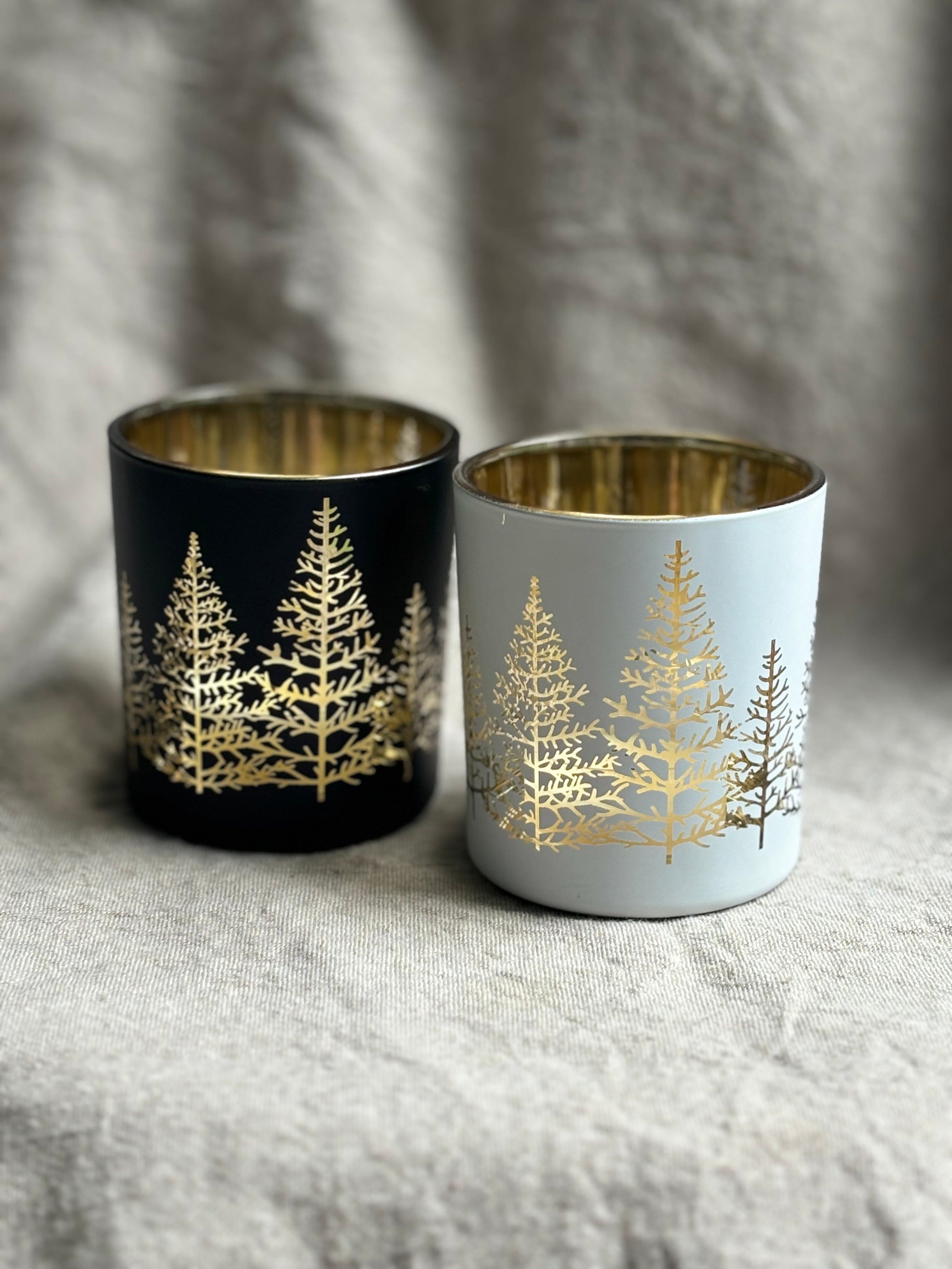 Beautiful little glass tealight holder for lantern. Shiny gold interior and chic matte black exterior. Perfect for making your decor shine!