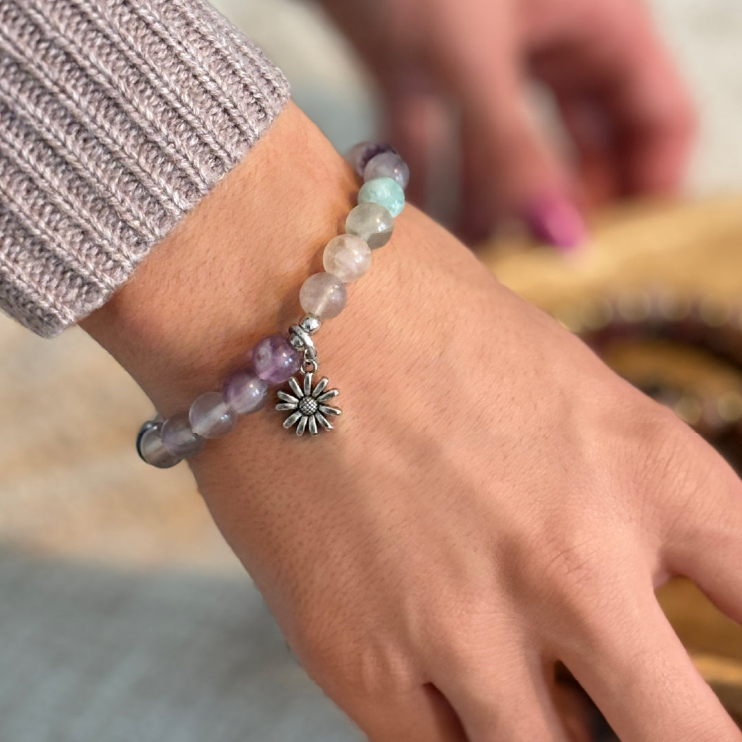 Fluorite and strawberry quartz - Bracelet