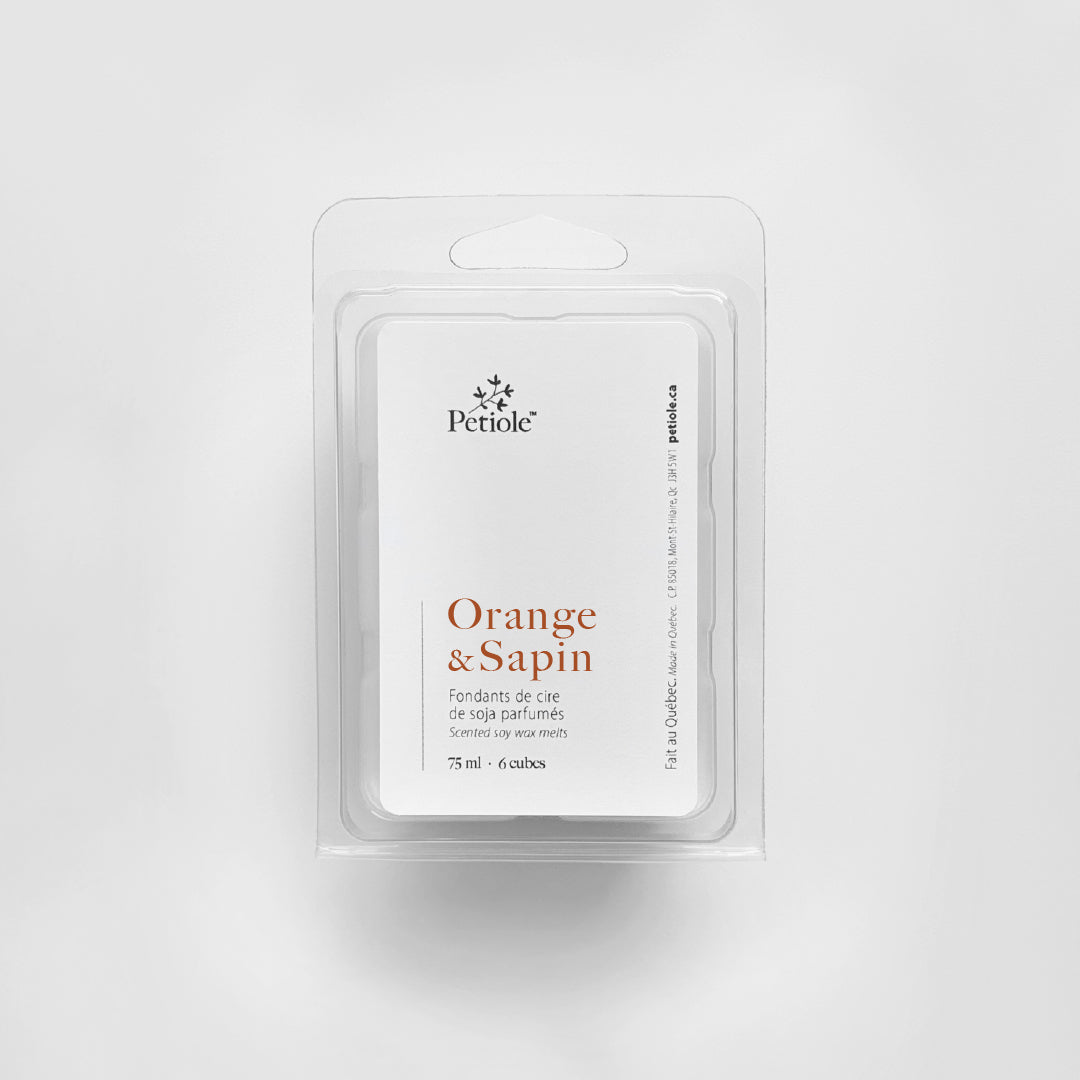 Nos fondants Orange & Sapin vous offre une des meilleures harmonies olfactives de la nature! Le parfum résineux du sapin s’allie parfaitement à la note fruitée et acidulée de l’orange. Coup de cœur assuré! Contenant des huiles essentielles pures et naturelles, pour la véritable fragrance que vous recherchez.
