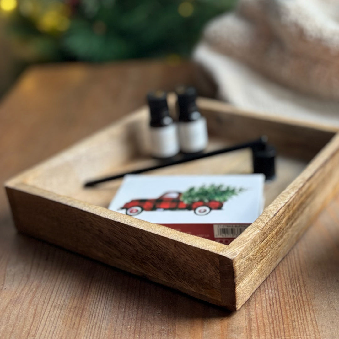 Apportez beauté naturelle à votre intérieur avec notre plateau carré. Fabriqué à la main en bois de manguier durable, ce plateau présente des bords surélevés et une finition lisse. Idéal pour ranger vos produits d'ambiance. Son design intemporel et minimaliste s'intègre parfaitement à tous les styles de décoration, du moderne au rustique.